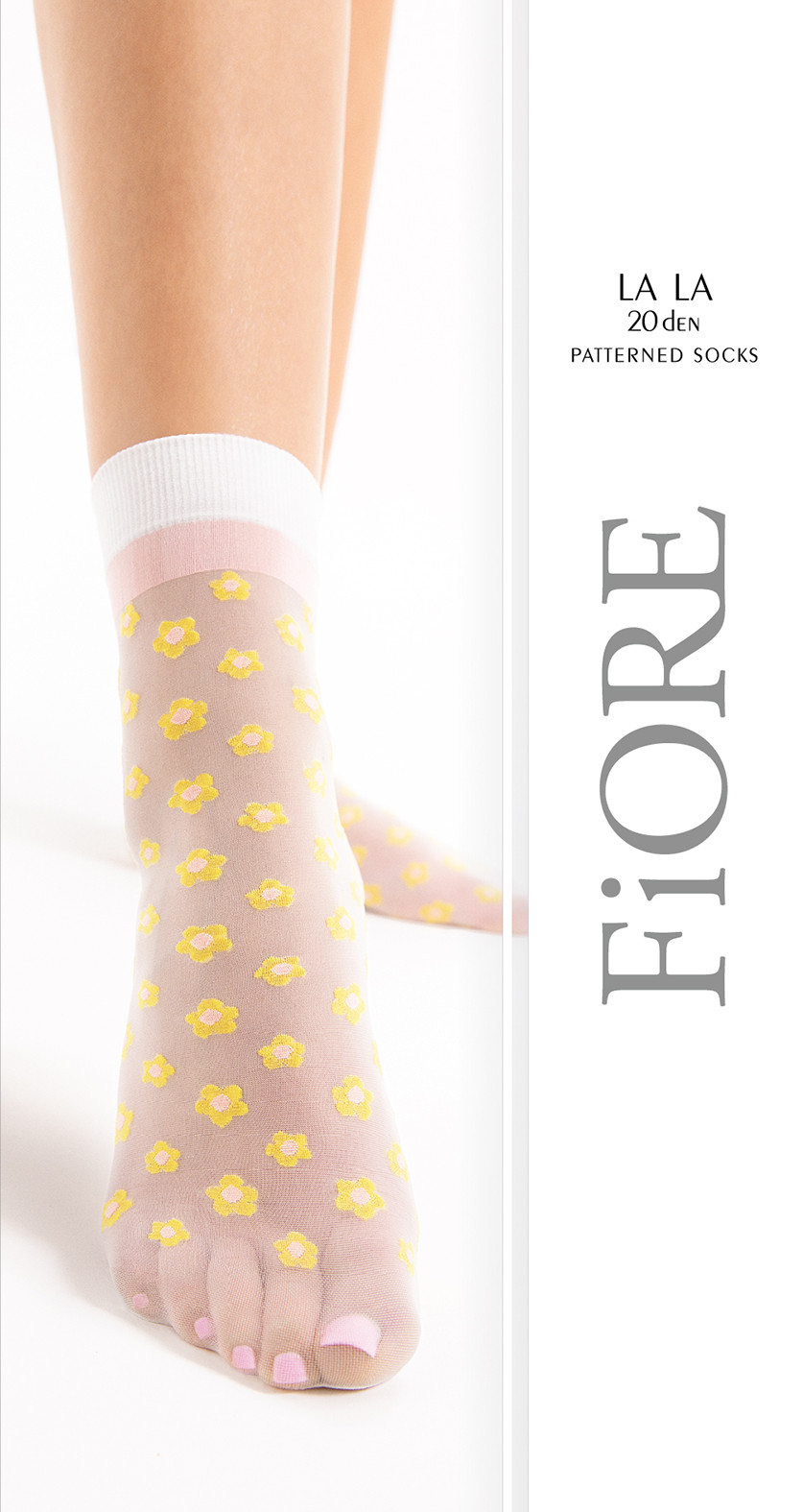 Fiore - 20 denier ankle socks with flower pattern and comfortable top
